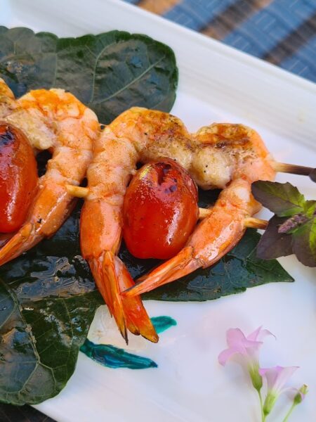 brochettes de crevettes grillées en coeur