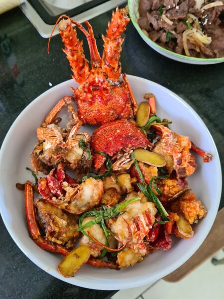 Langouste au gingembre et oignon vert