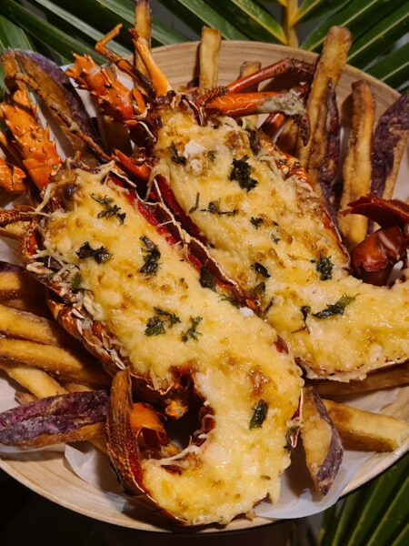 Langouste gratinée à la crème et au vin blanc