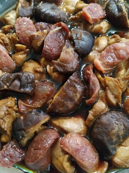 Poulet vapeur aux champignons & saucisses chinoises