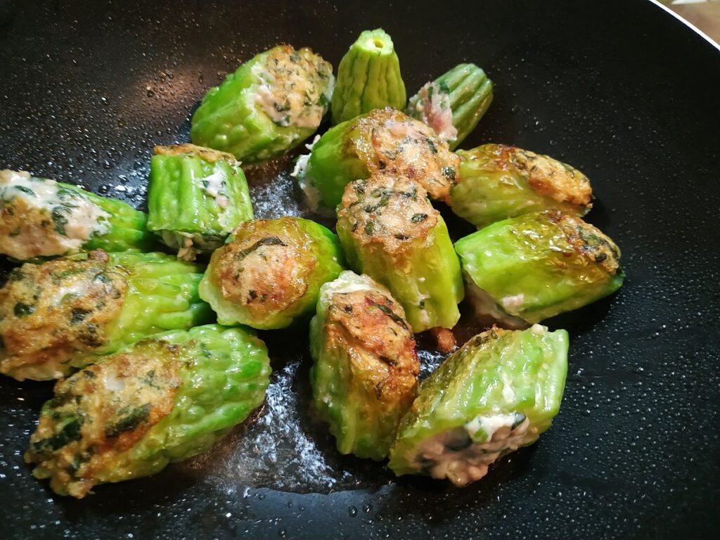 Le fouka, avec son goût légèrement amer, prend une toute autre dimension quand il est farci. Ici, il est généreusement garni de viande parfumée, sauté à la poêle jusqu’à ce qu’il soit bien doré et tendre. Le contraste entre l’amertume du légume et la douceur de la farce crée un équilibre surprenant et savoureux.